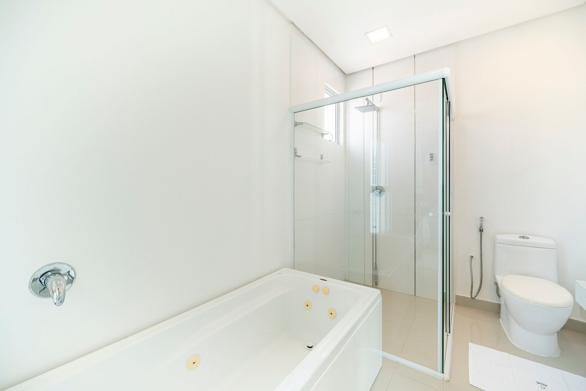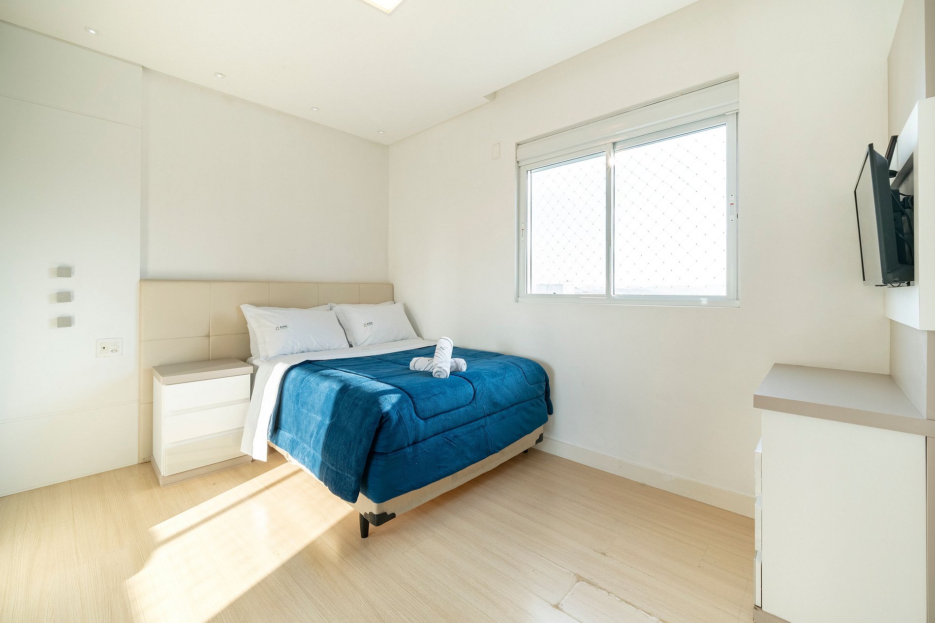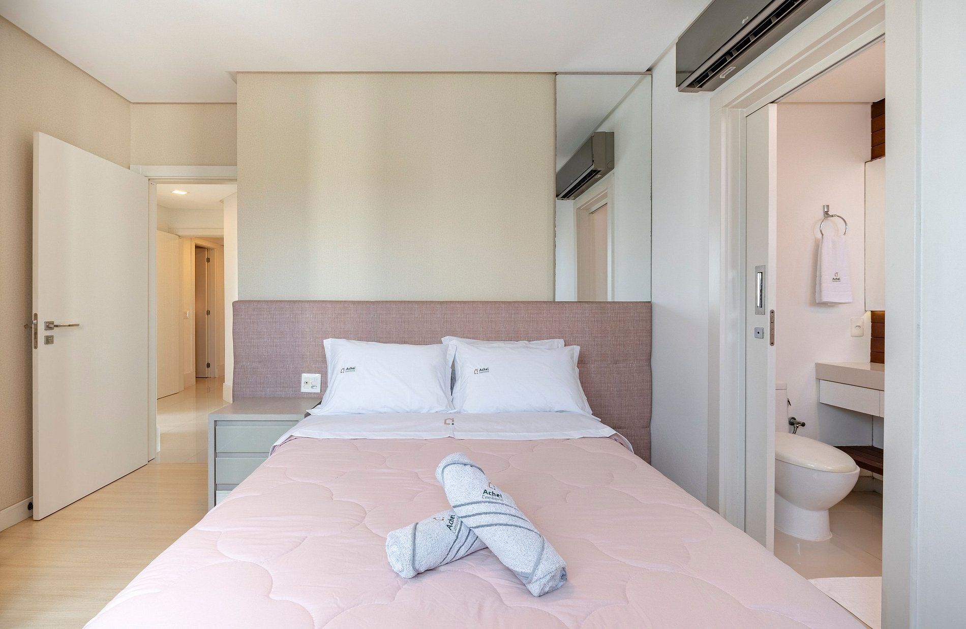 São 3 banheiros completos + lavabo, com 3 suítes, uma suíte com cama queen, e as outras duas com cama de casal padrão. No apartamento ainda é disponibilizado tudo o que você precisa para o seu conforto. Os mais variados utensílios e eletrodomésticos, Airfryer, máquina de lavar e secar, além de contar com internet Wi-Fi por fibra ótica em todo imóvel. Ar condicionado quente e frio em todos os quartos e vaga de garagem coberta para 2 carros.