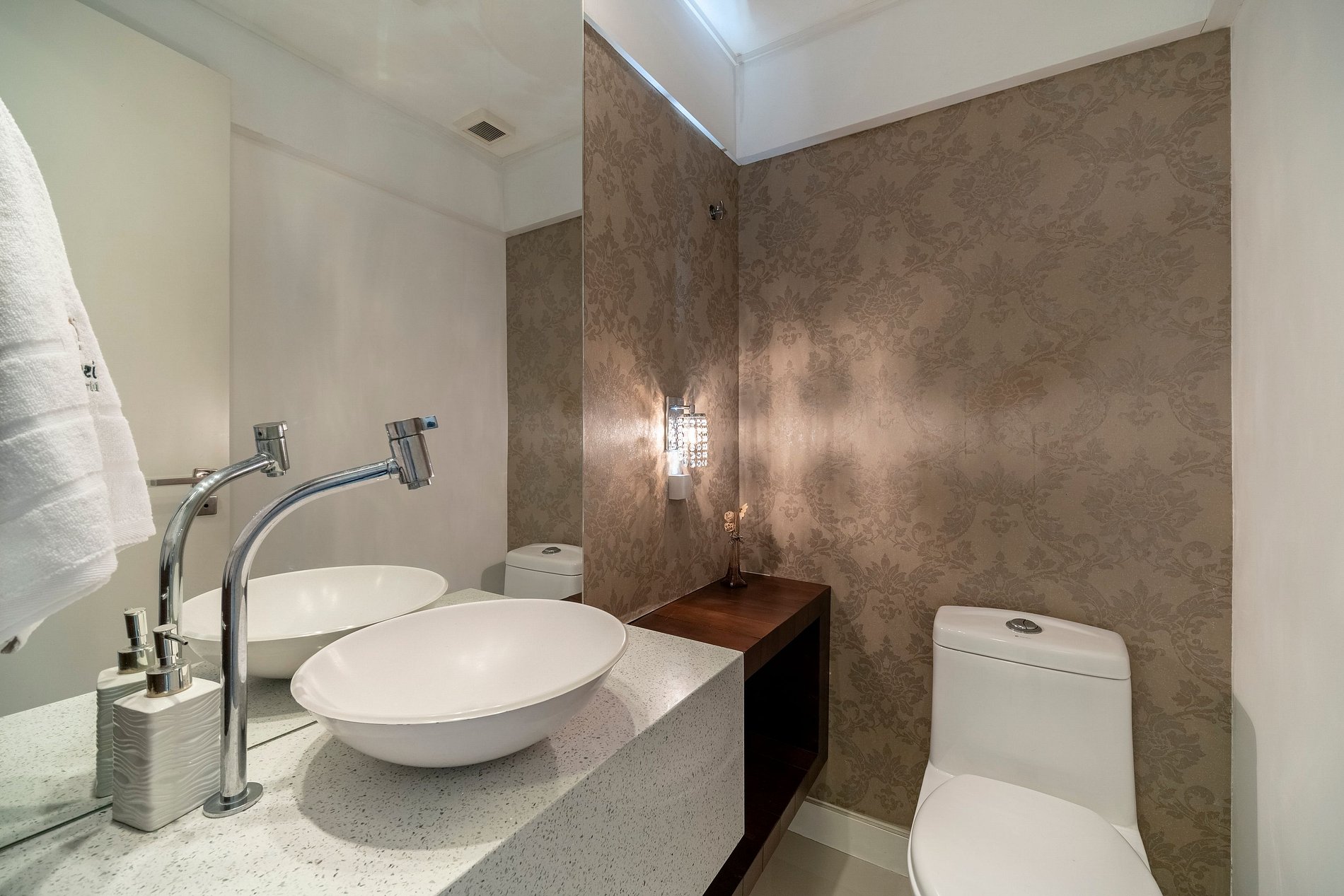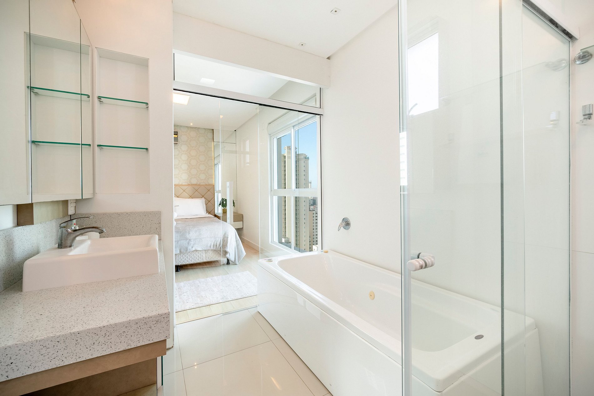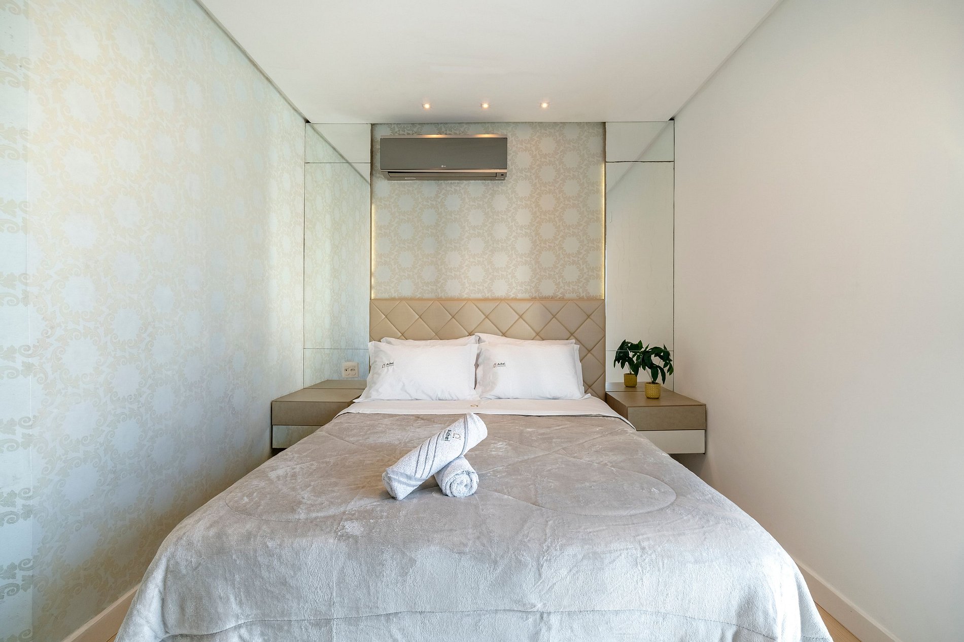 São 3 banheiros completos + lavabo, com 3 suítes, uma suíte com cama queen, e as outras duas com cama de casal padrão. No apartamento ainda é disponibilizado tudo o que você precisa para o seu conforto. Os mais variados utensílios e eletrodomésticos, Airfryer, máquina de lavar e secar, além de contar com internet Wi-Fi por fibra ótica em todo imóvel. Ar condicionado quente e frio em todos os quartos e vaga de garagem coberta para 2 carros.