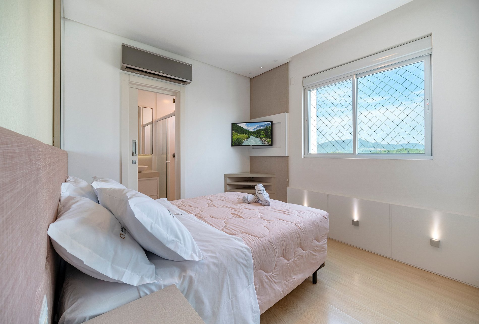 São 3 banheiros completos + lavabo, com 3 suítes, uma suíte com cama queen, e as outras duas com cama de casal padrão. No apartamento ainda é disponibilizado tudo o que você precisa para o seu conforto. Os mais variados utensílios e eletrodomésticos, Airfryer, máquina de lavar e secar, além de contar com internet Wi-Fi por fibra ótica em todo imóvel. Ar condicionado quente e frio em todos os quartos e vaga de garagem coberta para 2 carros.
