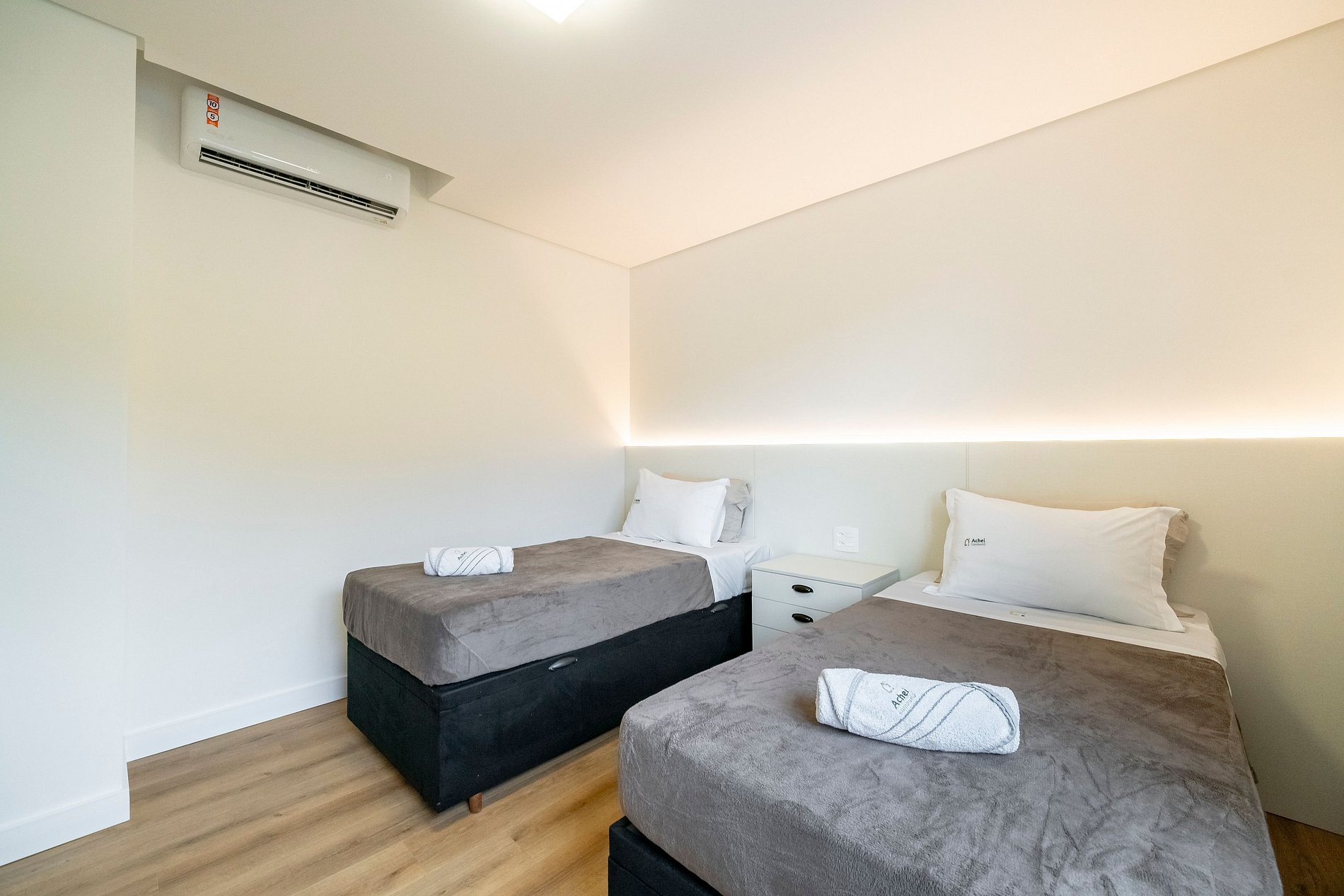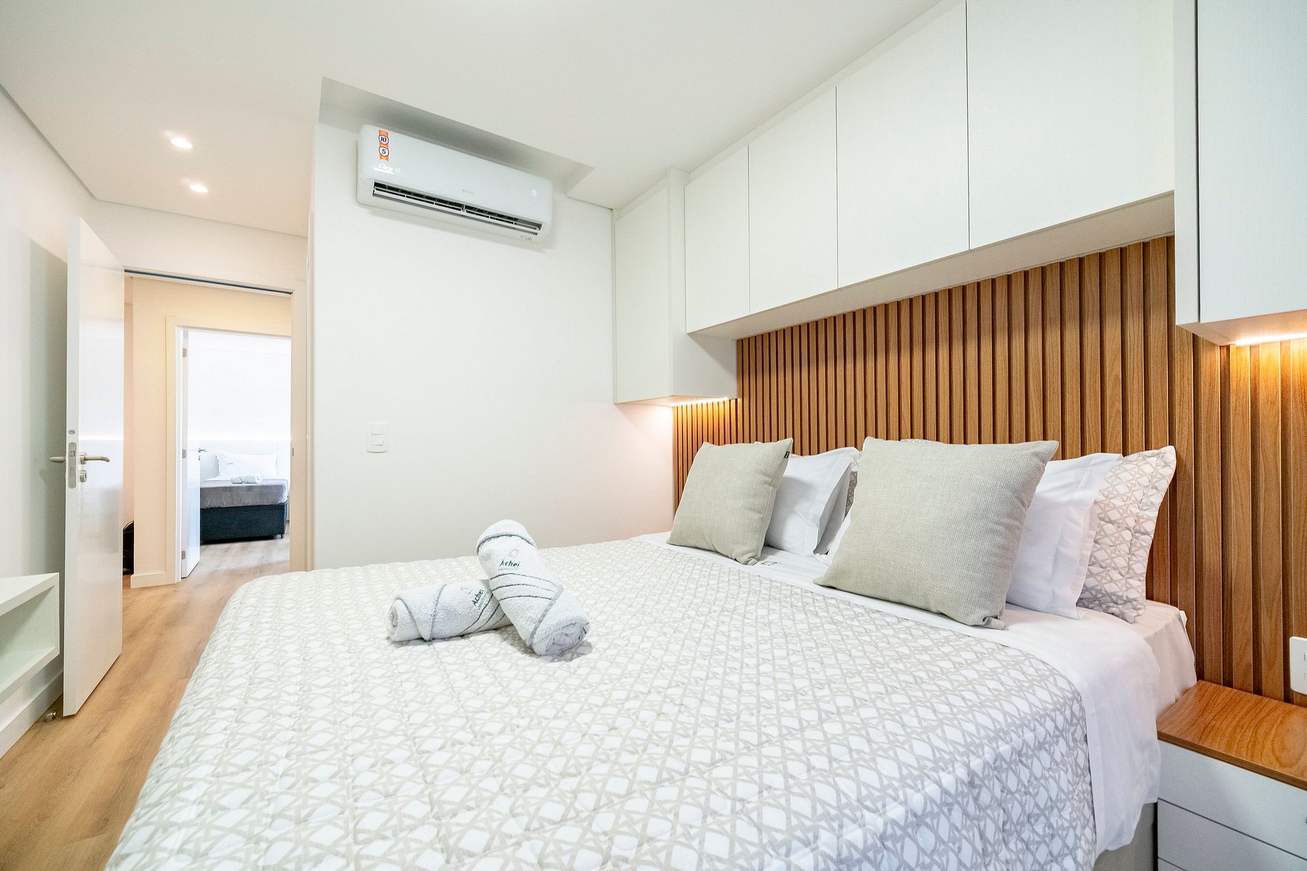 • Roupas de cama: O imóvel é entregue com roupas de cama e banho para o número de hóspedes, incluindo uma toalha de banho por pessoa.
