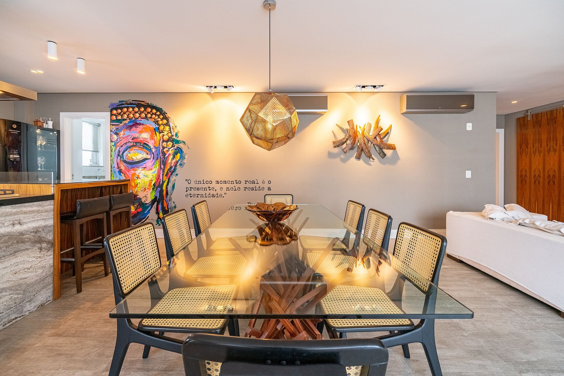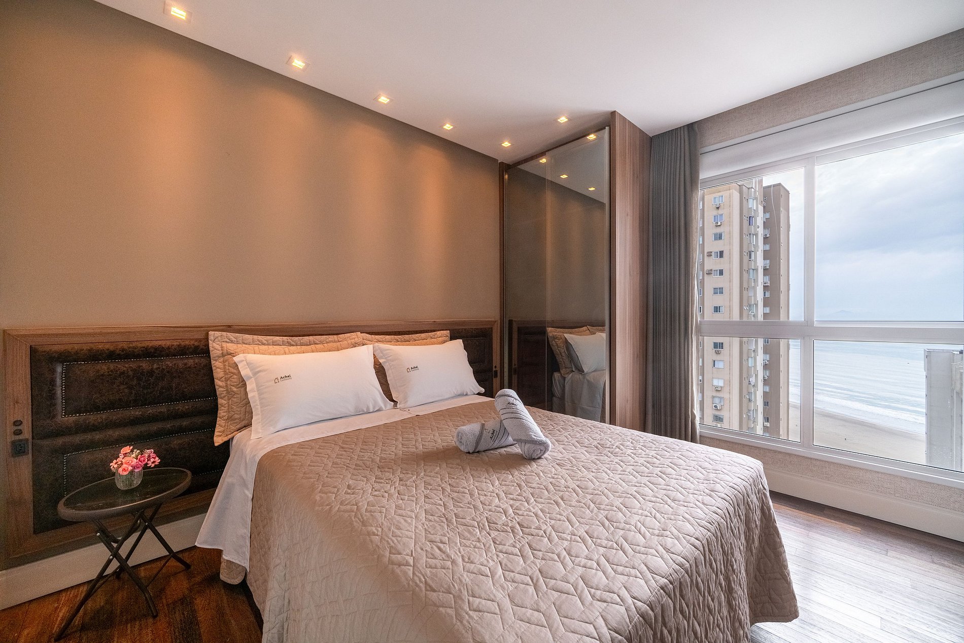 Este incrível apartamento de altíssimo padrão é ideal para quem quer luxo e conforto! Oferece 152m2 de elegância em cada detalhe, amplas janelas com vista para praia, Smart TV na sala de estar e nos dois dormitórios! Além disso, possui além de ar condicionado em todos os ambientes e fica apenas 1 quadra da Praia Central! Por ser localizado no centro, você poderá fazer muitas coisas a pé, tendo a comodidade de deixar o carro e contemplar com tranquilidade tudo que Balneário tem para oferecer!