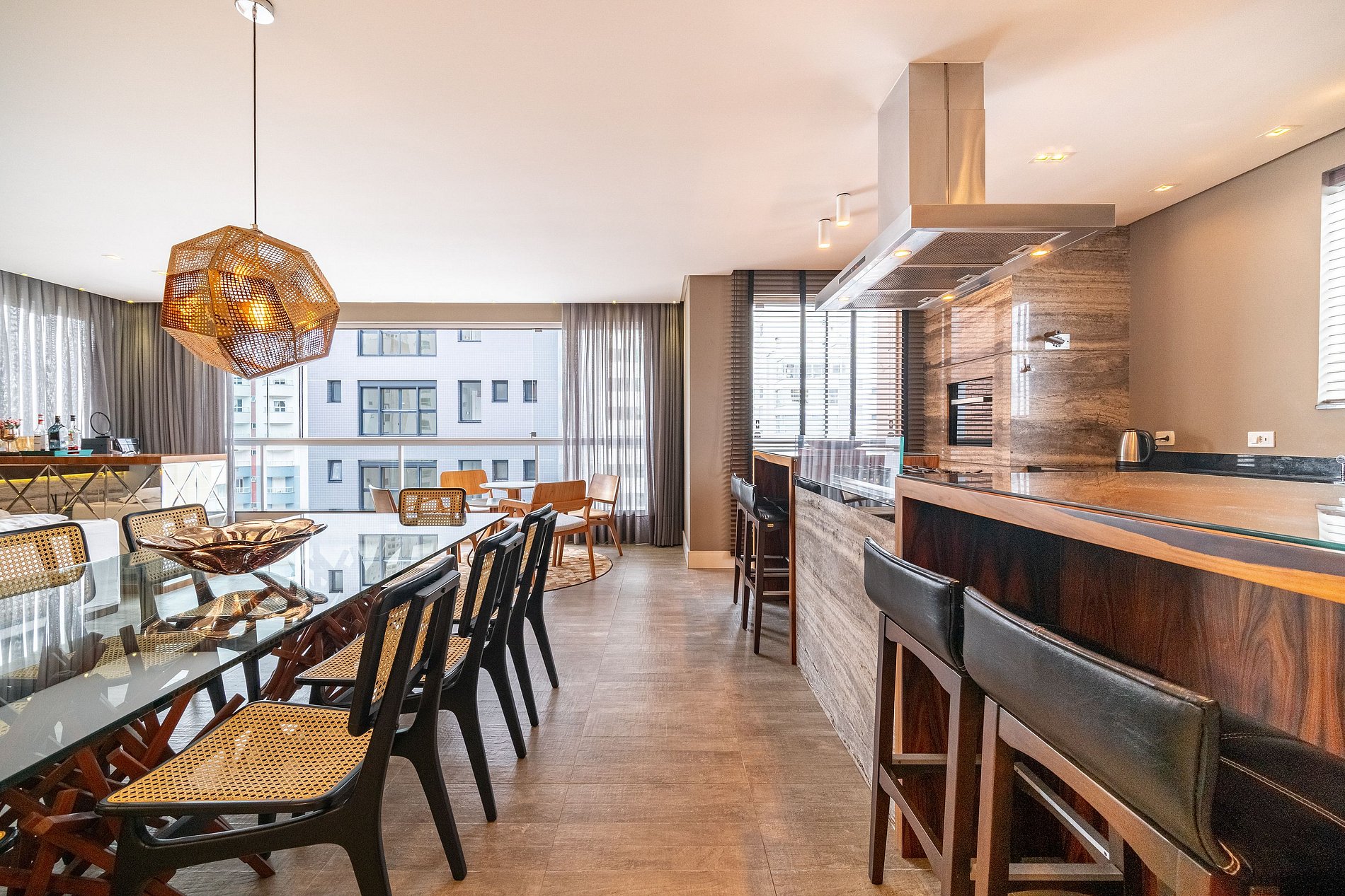 O apartamento oferece Wi-Fi com fibra óptica, máquina de lavar e secar, adega de vinhos, churrasqueira, uma cozinha totalmente equipada, cafeteira, torradeira e outros utensílios. Para maior comodidade, conta com aquecimento a gás nos chuveiros, garantindo o máximo de conforto.