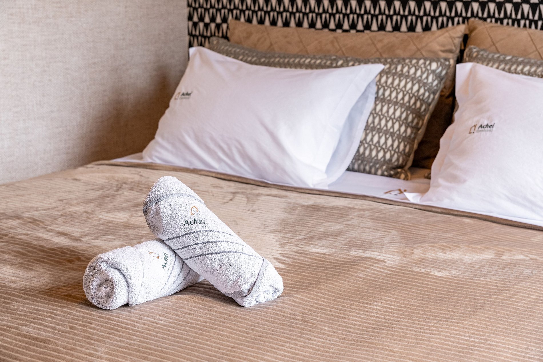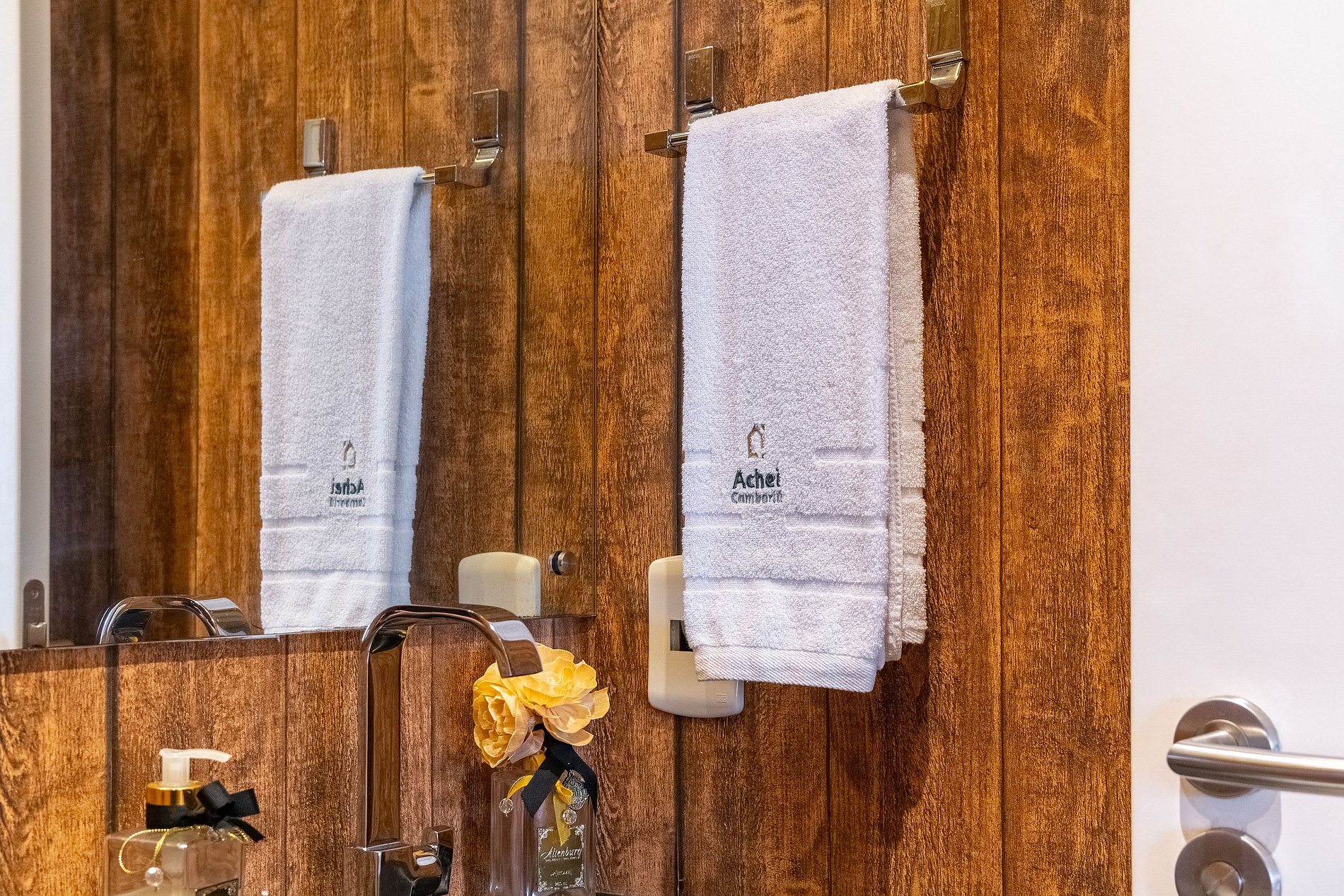 • Roupas de cama: O imóvel é entregue com roupas de cama e banho para o número de hóspedes, incluindo uma toalha de banho por pessoa.